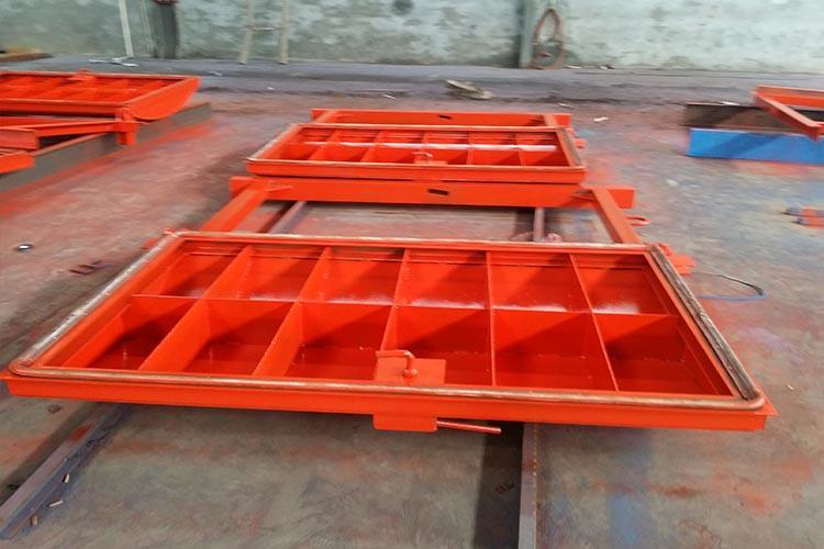 抗沖擊波密閉門(mén)用于井下爆炸材料庫(kù)和爆炸材料發(fā)放硐室,起隔離作用阻止爆炸沖擊波及爆炸產(chǎn)生的火焰、有毒氣體向外部巷道擴(kuò)散,由總回風(fēng)道排出,抗沖擊超壓能力為2500kpa??箾_擊波密閉門(mén)不但有抵抗沖擊波的能力,還具有通過(guò)活門(mén)張開(kāi)的角度大小來(lái)調(diào)節(jié)庫(kù)房通風(fēng)量的作用,庫(kù)房?jī)?nèi)發(fā)生火情時(shí),關(guān)閉通風(fēng)孔起隔離作用,可以說(shuō)是一舉兩得的好門(mén)。