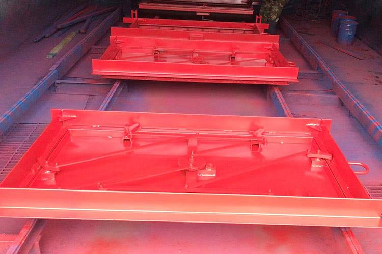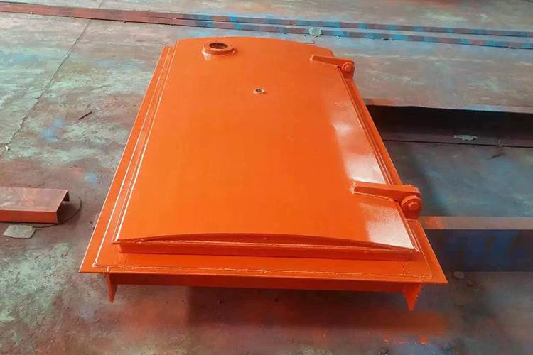 避難硐室密閉門使用對稱的方式進行安裝,它的每一個安裝件都是使用鋼材料來焊接成的。避難硐室密閉門的門扇是由井字結構來進行焊接的,反風的主要裝置是采用鋼管來插拴的,安裝的時候在合頁處涂上潤滑油,保證使用的靈活性。斜風井防爆門關門時,各部件反向擺動,到關閉狀態(tài)時成矩形狀態(tài)。